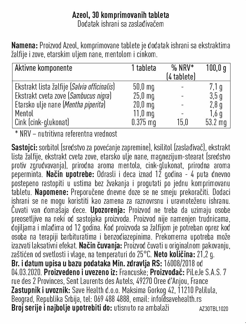 Žalfija i zova doprinose zdravlju gornjeg respiratornog trakta. Cink doprinosi normalnoj funkciji imunskog sistema.